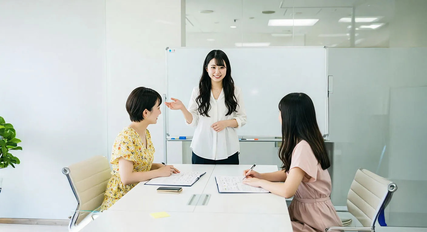 通勤チャトレとは違って、いつも隣でサポートしてくれるスタッフがいないため、お仕事に関する相談ができる場所として勉強会の場を設けております!